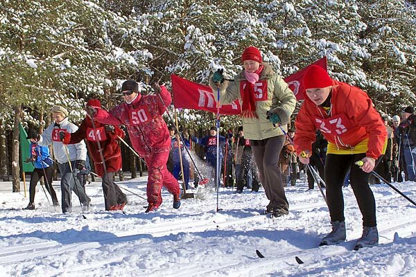 В лыжных гонках на дистанции 2 км приняли участие более 100 команд, представлявших различные учреждения, предприятия, вузы и школы Витебска. По традиции, на лыжню вышли и чиновники облисполкома и горисполкома. В забеге среди руководителей разных рангов первым пришел к финишу глава администрации Первомайского района Витебска Николай Орлов. Второе место досталось начальнику управления физической культуры, спорта и туризма Витебского облисполкома Михаилу Портному. Бронза – у начальника Витебского областного управления МЧС Василия Чекана.