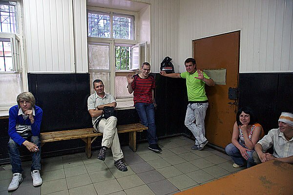 Па дарозе да пастарунка прапаршчык палка міліцыі спецыяльнага прызначэння спрабаваў дабіцца ад нас праўды — хто ж такі гэты “флэш-моб”? У Кастрычніцкім РАУС у “дзяжурку” следам прывезлі яшчэ шэсць чалавек — такім чынам нас ужо было восем