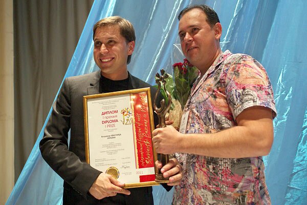Ланская «штурмовала» «базар» шесть раз. Квасница – два. Первый раз – в 2009 году, но тогда украинский отборочный тур выиграл Петр Дмитриченко. А в этом году мечта Владимира исполнилась – он стоял на витебской сцене. Хотя ярко заявил о себе уже на жеребьевке. В первый конкурсный день он спел классический украинский романс «Чорнії брови, карії очі» в современной эстрадной аранжировке, с элементами академического пения. А на втором концерте исполнил «Романс» на музыку и стихи своего брата Юрия Квасницы. И был «оглушен овациями».