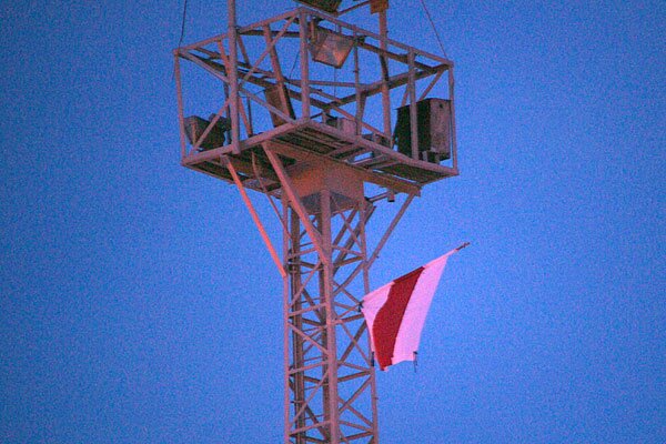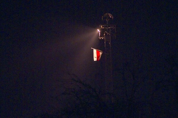 На вежы ў святле пражэктара сцяг правісеў амаль да 8 гадзін, пасля чаго яго знялі людзі ў цывільным.