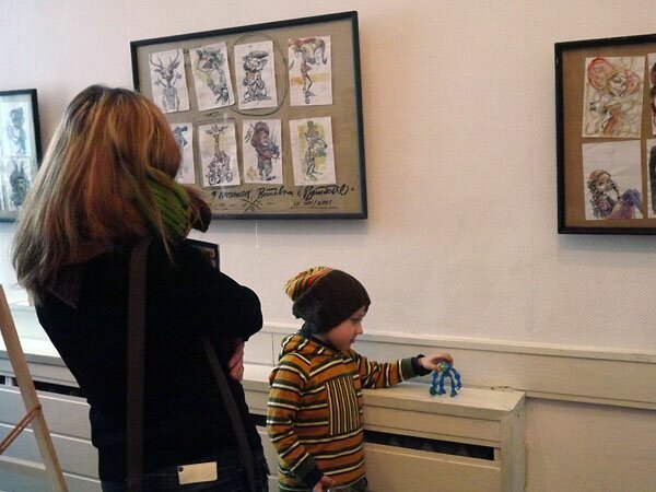 И эта выставка произвела фурор! Художественный Витебск, весь такой академический, серьезный и напыщенный, давно не знал подобного вернисажа. Здесь была «сумасшедшинка»: разрисованная шариковой ручкой кукла-голыш, стулья-декорации, «шнапс»-шампанское…