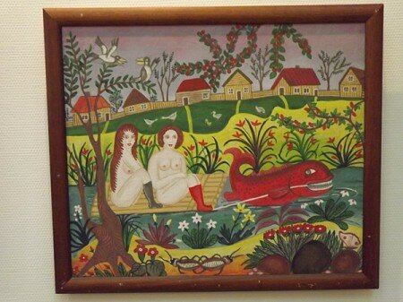 В первом зале этого музея представлены работы «английского мастера белорусского авангарда» Питера Хиксона (представьте: человек родился под Лондоном, а потом судьба занесла его в Могилев, где он работал инженером на фабрике «Химволокно»). Во втором зале – работы российских мастеров инситного жанра из коллекции Музея наивного искусства в Москве. В третьем зале, самом камерном, можно увидеть картины и инсталляции, которые предоставил Латвийский музей наивного искусства в Риге.