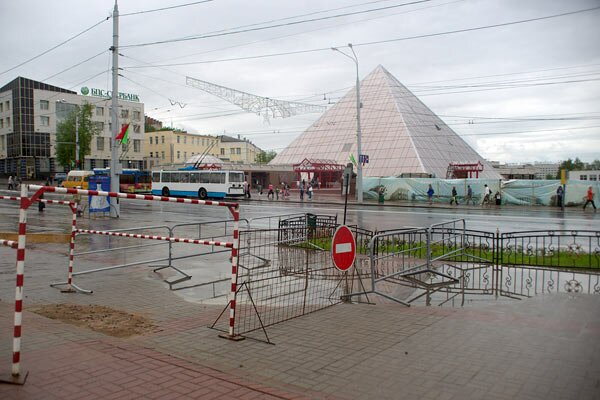Мало того, что эта дурацкая пирамида просто уродует исторический центр, так еще и пройтись по улице спокойно нельзя...