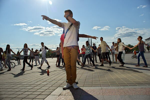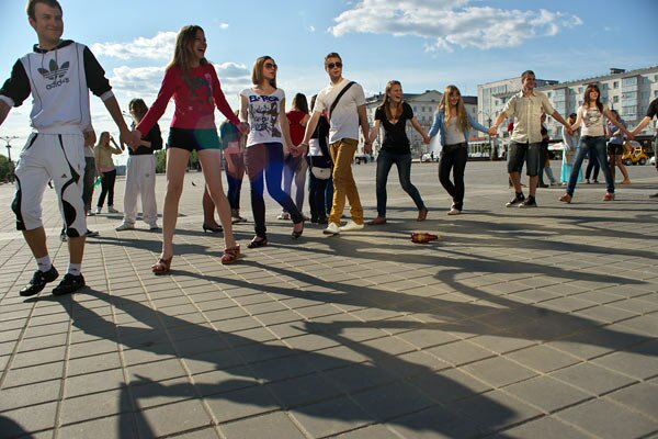 Нагадаем, што такі флэш-моб ўпершыню адбыўся ў Віцебску прыкладна год назад — тады ў акцыі прынялі ўдзел каля ста чалавек.