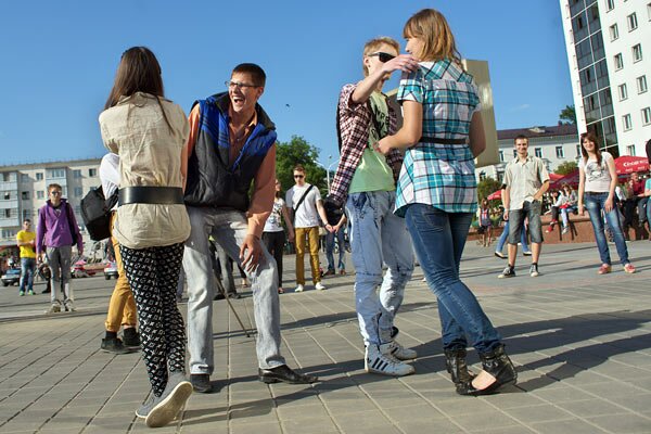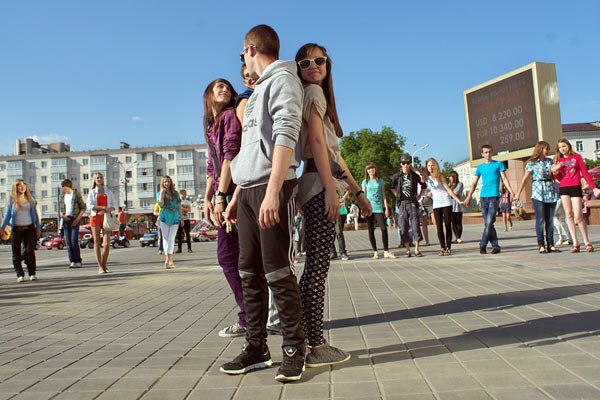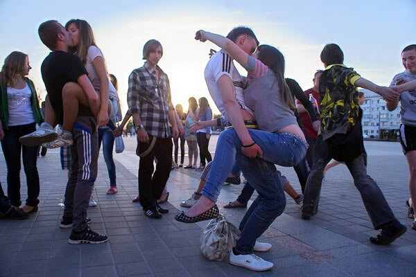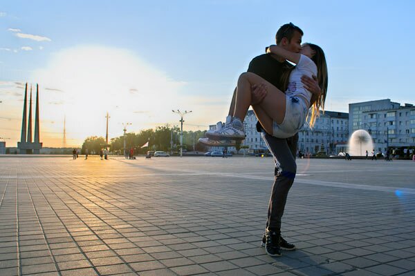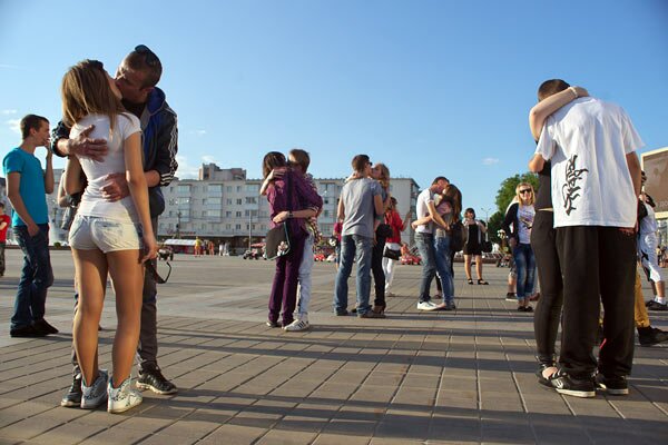 Сезон флэш-мобаў у Віцебску адкрыўся вечарам 26 траўня “Днём пацалункаў” на плошчы Перамогі.