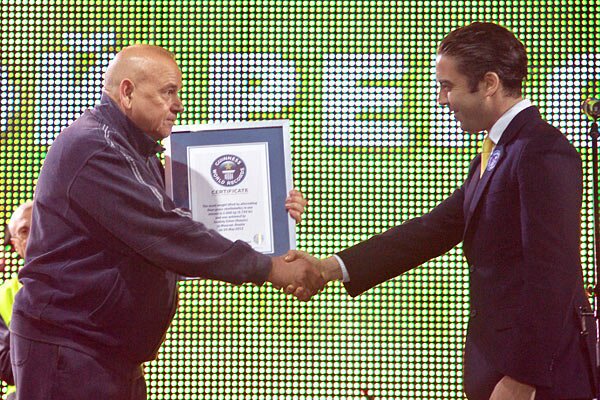 Рядом с рекордсменом также находились переводчик, фотографы и видеооператор. Результат все увидели на электронном табло.