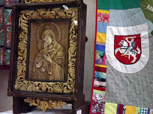 У дзвюх выставачных залах можна ўбачыць творы, зробленыя рукамі беларусаў, рускіх, украінцаў, яўрэяў, літоўцаў, латышоў, татараў, грузінаў, азербайджанцаў, башкіраў. Так, казахскія галаўныя ўборы, падораныя паслом гэтай усходняй краіны, суседнічаюць на выставе з вышыўкай, якую зрабіла майстрыха-ўкраінка. Саламяная беларуская калядная каза стаіць побач з рускімі матрошкамі. А мужчынскі азербайджанскі касцюм – паблізу з вышываным рушніком, на якім змешчана галоўная праваслаўная малітва “Ойча наш”.