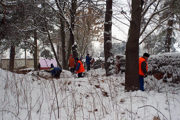 Но парники оказались не самым твердым орешком для чиновников. Рядом стоят пустующие казармы. Снести их так просто не получится – на случай ядерной войны рассчитывались. Кроме того, заросли казармы вокруг лозой и бурьяном, о программе «Чистые поля» ничего не подозревая. И вот суровые мужики с бензокосами по колено в снегу воюют с бурьяном и лозой. Срезают и жгут на месте, не смотря на то, что рядом газопровод.