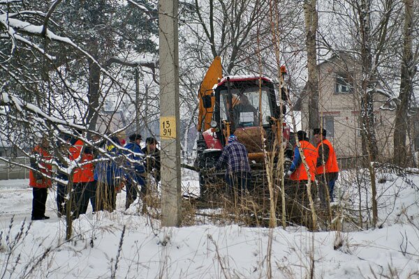 В Витебске в микрорайоне Зеленый городок в ожидании визита президента сносят парники, косят по колено в снегу бурьян и укладывают в снегопад асфальт.