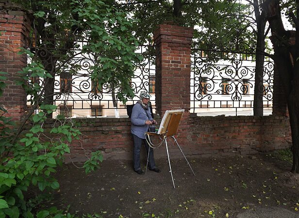 Частые гости в этом дворе, по словам собеседника, и молодожены. «На фоне наших домов каждую неделю фотографируются свадьбы. Причем всегда одинаково, с одних и тех ракурсов. Еще здесь постоянно можно видеть художников – и взрослых, и детей. Сидят с мольбертами, рисуют…»