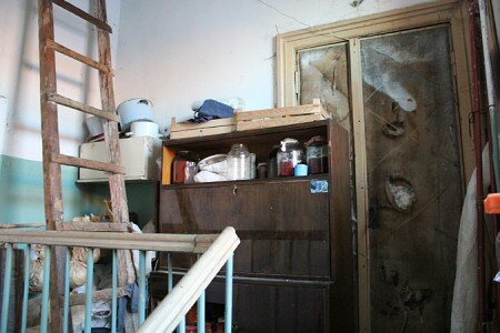 Надежда Ивановна живет здесь 30 лет, переехав в эту квартиру по обмену из Североморска Мурманской области: «На первом этаже у нас пять комнат. До революции все они принадлежали одной семье. А в советское время их превратили в коммуналку. Сейчас на первом этаже проживают три семьи: у меня и соседей – по две комнаты, еще у одной соседки, пожилой женщины – одна комнатушечка. Кухня и туалет у нас общие. А вот на втором и третьем этажах – обычные квартиры, не коммунальные».