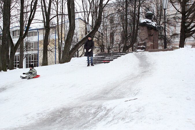 Эх, сколько шишек было набито на этой ледянке от памятника(ещё до его установки):lol: