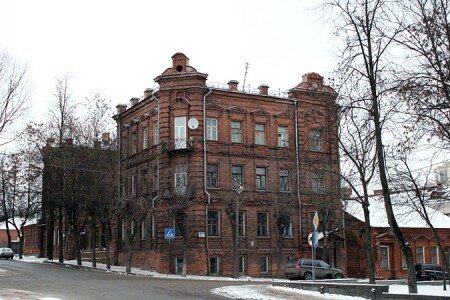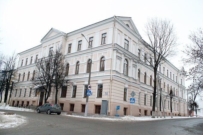 Трехэтажное здание (Чехова, 11) в стиле неоклассицизма сейчас занимает педагогический факультет ВГУ имени П.Машерова. А в ХIX веке здесь было мужское духовное училище.