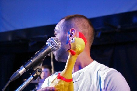 Для тех, кто не очень «волочет» в «искаженном и нелепом рок-н-ролле» – так PLUM BUM называет свой стиль, у группы есть замечательная отвлекалочка. Это танцор Виктор Бовини. Человек-зажигалка, который не двигается, наверное, только во сне. А когда ему надоедает танцевать, он все равно придумает, чем заняться. Стреляет в зрителей серпантином, пускает в зал разноцветные бумажные самолетики, размахивает флагом…