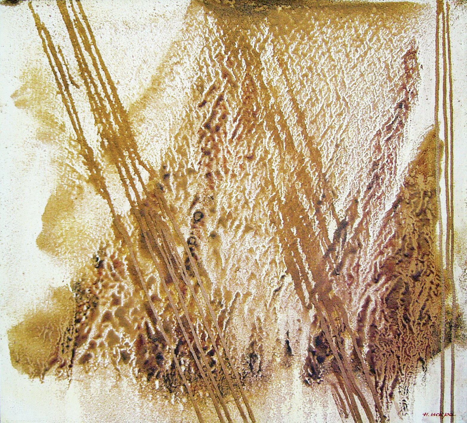 И опять нас удивляет новая техника. Художник назвал её «флисзанд», так как связана она с применением песка. Песок Искра привез с горы Синай во время той памятной поездки.