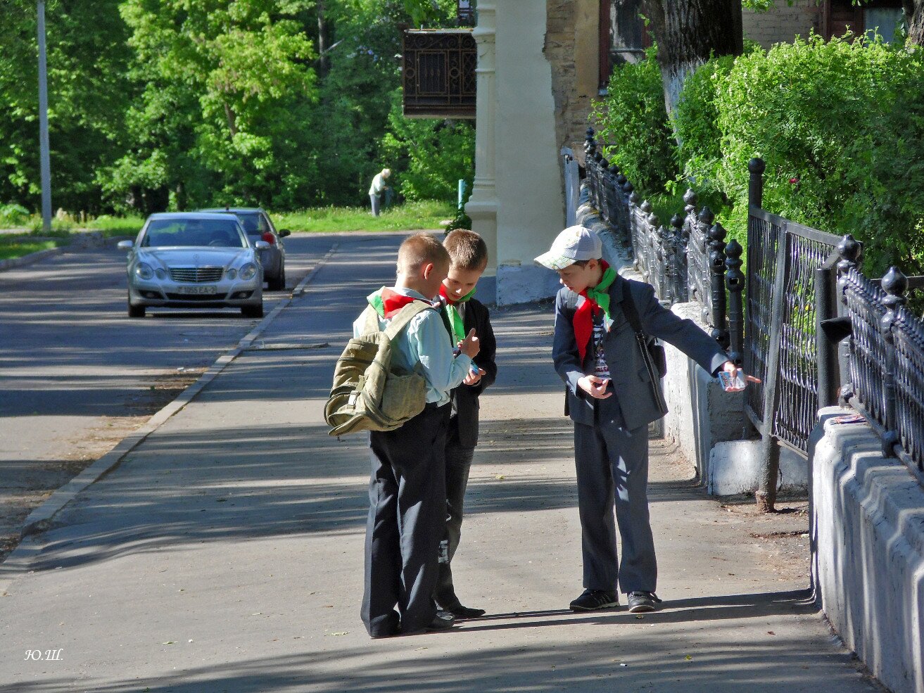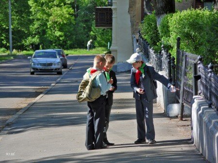 А на улице Путна, возле СШ №10, фотокору "ННВ" повстречались три пионера в красно-зелёных галстуках со смартфонами. Современные средства связи в руках у мальчишек окончательно вернули меня из прошлого в настоящее.