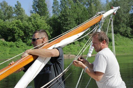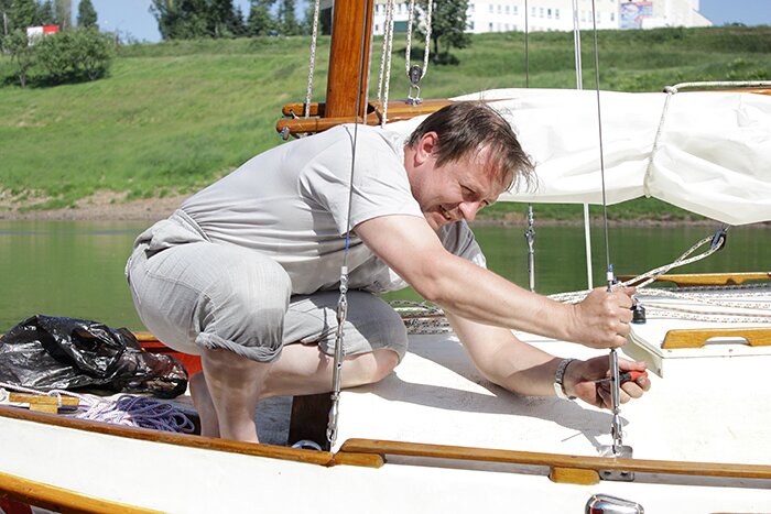 Вчера Владимир Конарев и его друг Гарий Степанов готовили яхту к сегодняшнему старту. Произойдет это в 9 часов утра с правого берега Двины возле колледжа связи.