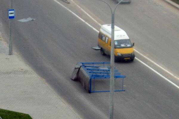 6 октября в Витебске автобусную остановку, недавно установленную на улице актеров Еременко в микрорайоне Билево-2, ветром унесло на проезжую часть.
