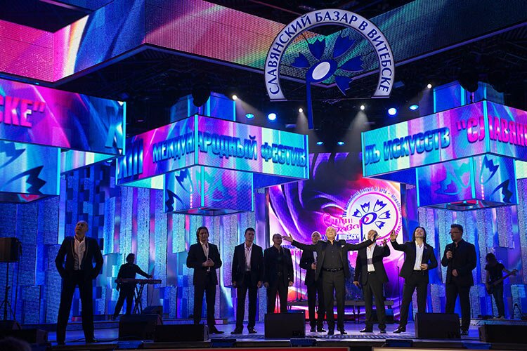 Дальше последовал блок из советских шлягеров. Причем под одну из песен на сцену удалось втянуть массу зрителей, чем были удивлены сами артисты — по их словам, еще несколько лет назад на «Славянском базаре в Витебске» нельзя было отойти от строгой канвы концерта.
