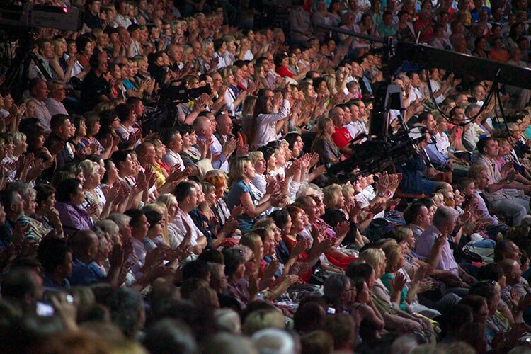 После хита всех времен и народов «Хава Нагилы» хор затянул «Надежду», написанную в 1971 году совместно композитором Александрой Пахмутовой и поэтом Николаем Добронравовым. Большинство знает ее в исполнении Анны Герман. При этом зрителям предложили спеть песню вместе с ансамблем. И Витебск спел! Причем спел так, что певцы из хора воскликнули: «Россия отдыхает! Городу не нужны ни репетиции, ни гонорары. Город сам поет!» И артисты аплодировали Витебску стоя.