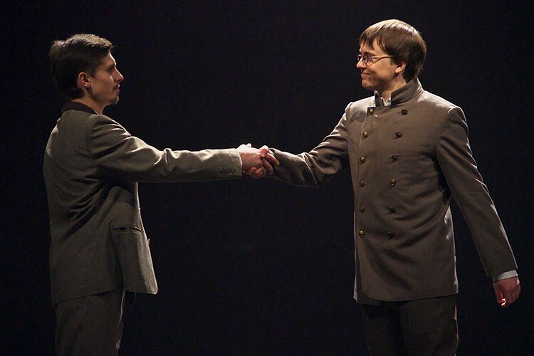 Мабыць, згодна рэжысёрскай задумы, Андрэй Беларэцкі (акцёр Дзмітрый Каваленка) на сцэне амаль не дзівіцца, не баіцца, не перажывае першага кахання, не абураецца і не змагаецца — ён адчужана, нібы праз смугу праляцелых дзесяцігоддзяў, і педантычна, як уважлівы фалькларыст, згадвае падзеі сваёй маладосці.