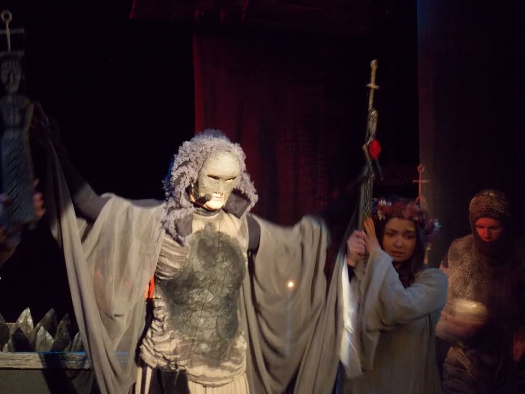 Можно было бы и удивляться выбору спектакля «Ладдзя Роспачы» актрисой в качестве бенефисного. Перед зрителем сразу же разверзлось сценическое пространство, погружающее в бездонный сумрак Средневековья. Для постановки режиссёра Виктора Климчука характерен глубокий и детальный символический язык, подчёркивающий наличие такого же символического мышления у представителей данной эпохи. Однако выбор был не случайным.