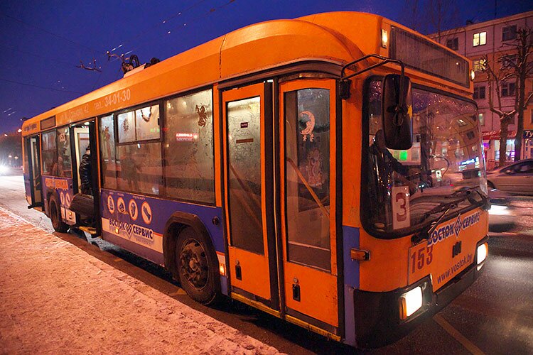 Фотофакт: По Витебску ходит новогодний троллейбус