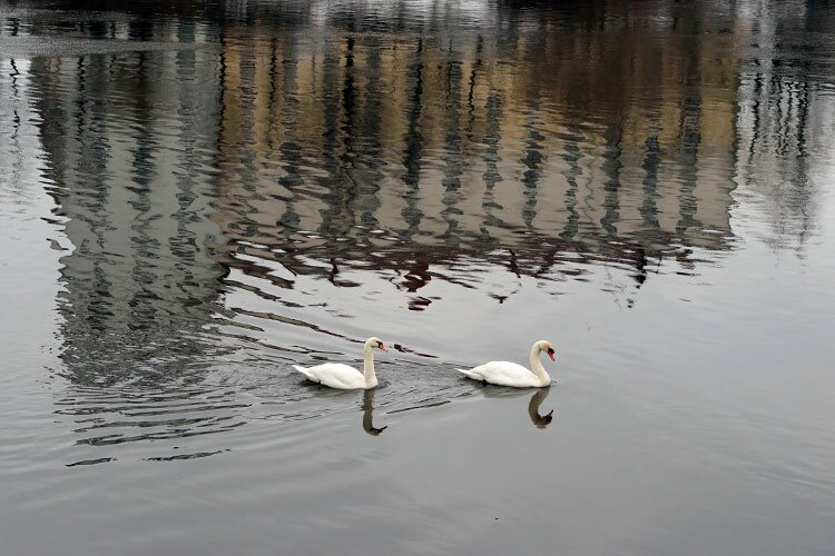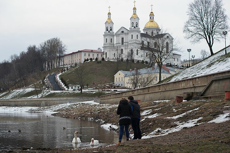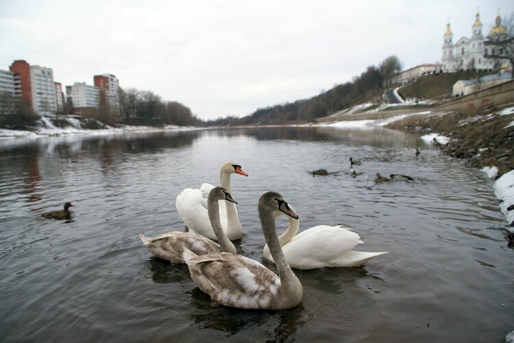 Лебеди на Двине в Витебске давно же не редкость, эти красивые птицы появляются в городе достаточно часто. Впрочем, попытка поселить их в неволе не Витьбе в апреле 2014 года закончилась неудачей.