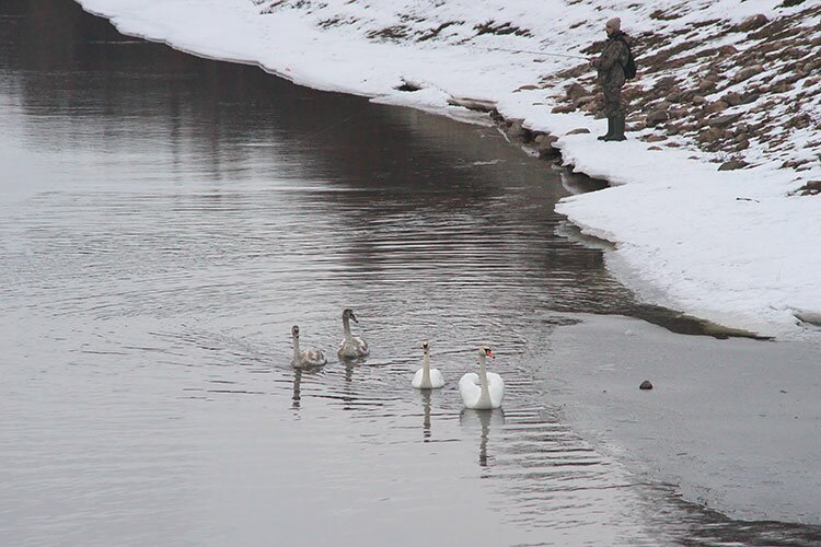 25 февраля в Витебске на Двине между Кировском мостом и устьем Витьбы появилось шесть лебедей.