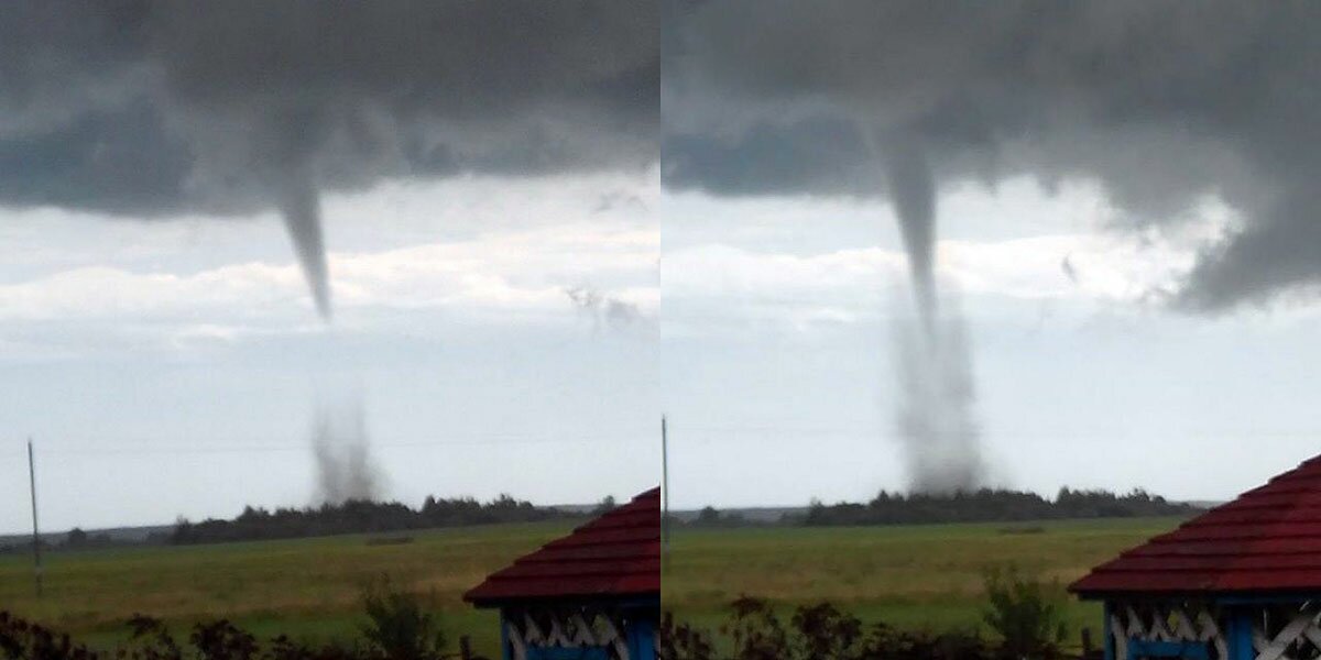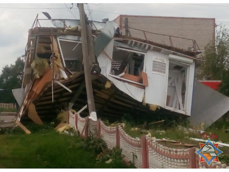 11 июля с 16:00 по 16:30 сильный ветер в Шарковщинском районей вызвал серьезные разрушения: повреждения кровель зданий, опрокидывание техники. Очевидцы зафиксировали на фото и видео большой смерч.
