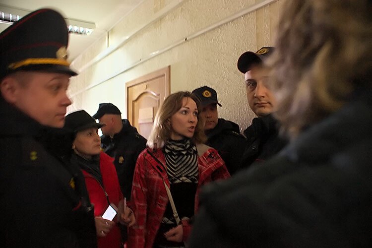 Журналисты, правозащитники и просто неравнодушные жители Витебска начали собираться в фойе Октябрьского суда, как только он открылся. Однако к собравшимся вышла помощник председателя суда Ольга Климкова и, уведомив о том, что задержанных в выходные привезут только к 14:00. потребовала очистить здание суда. Это требование было подкреплено микроавтобусом с бойцами ОМОН и около 11:00 собравшиеся разошлись.