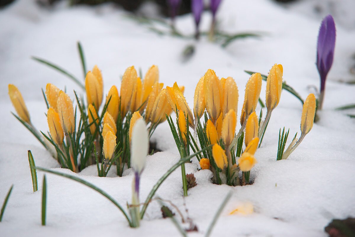 Фотофакт: Крокусы в снегу — зима на мгновенье вернулась в Витебск