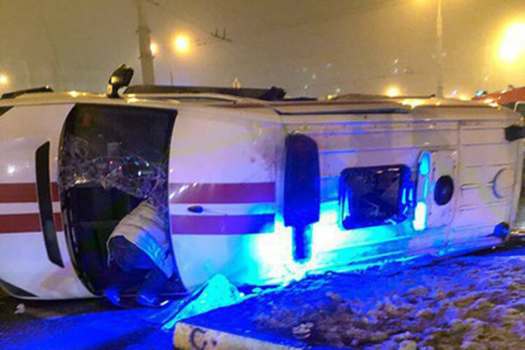 ДТП произошло около 19:00 в районе бывшего кинотеатра «Бригантина». В результате столкновения с легковушкой, которой управляла 28-летняя девушка, «скорая» опрокинулась на бок.