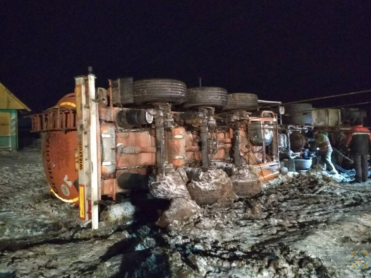 Автоцистерна «Iveko», перевозившая 26 тонн дизельного топлива, перевернулась 30 января в 16:57 недалеко от деревни Слобода Докшицкого района.