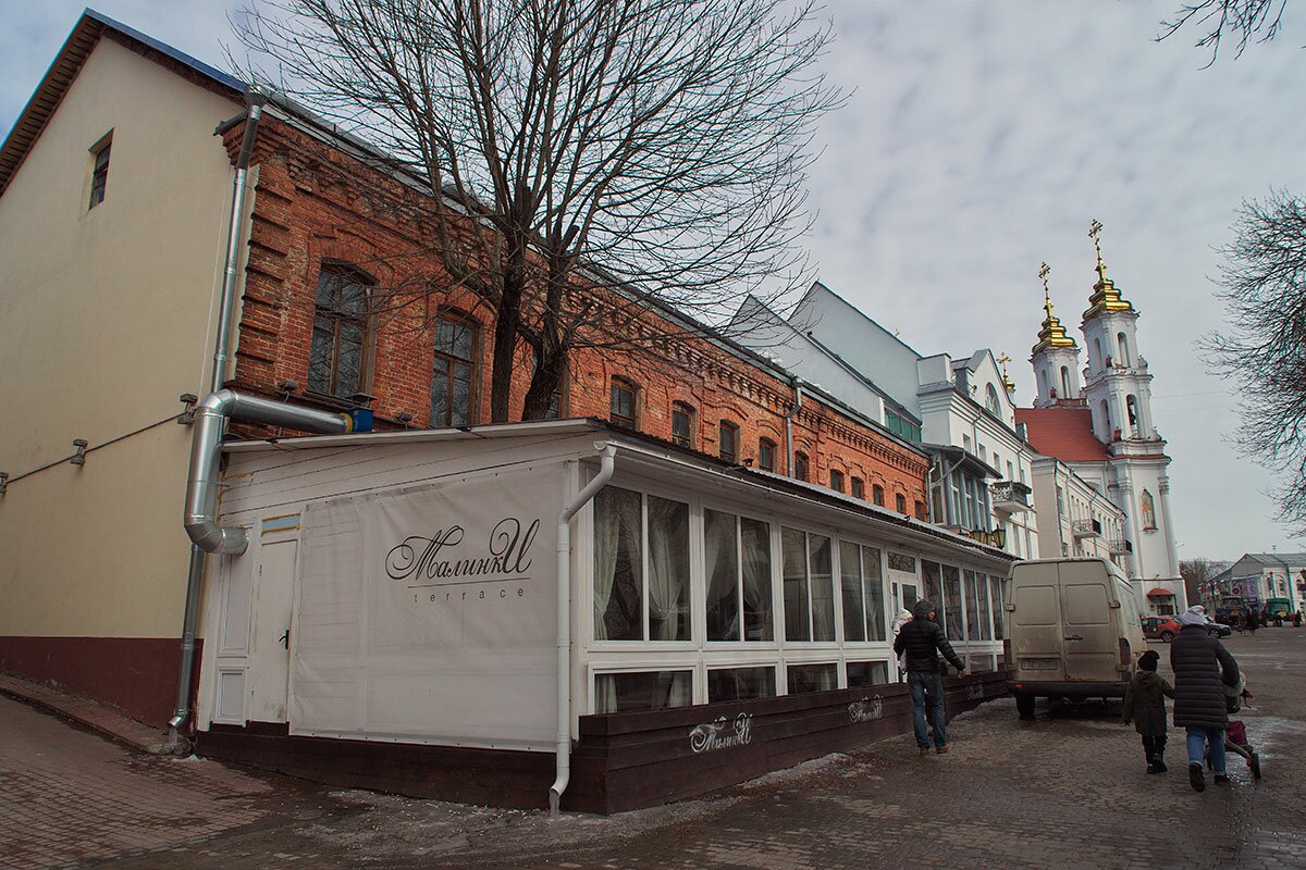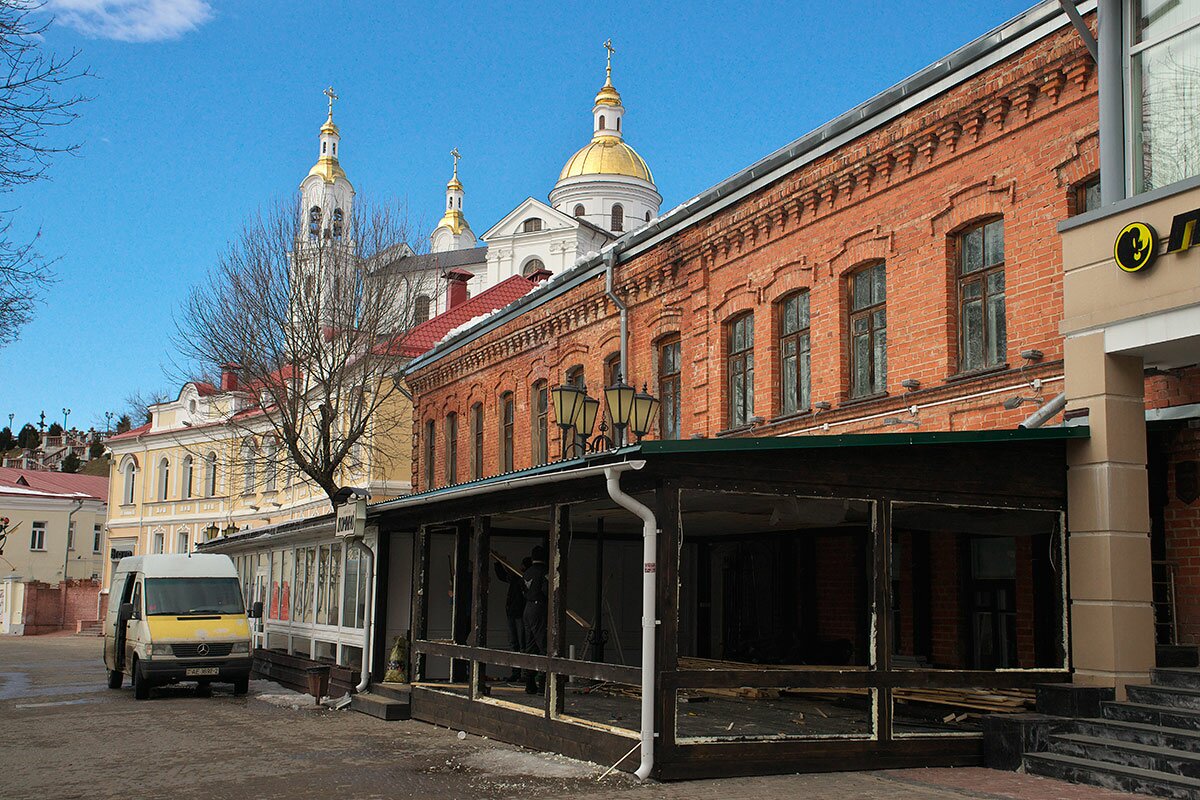 На улице Толстого в Витебске начался демонтаж деревянной веранды летнего кафе, которая закрыла один из домов XIX века, являющийся памятником архитектуры.