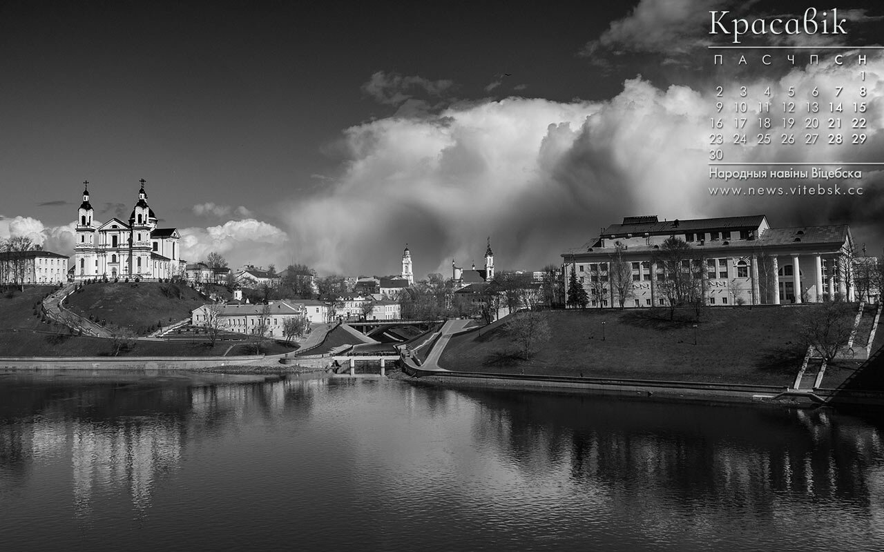Шпалеры для кампутара з фота Віцебска і календаром на красавік 2018 года