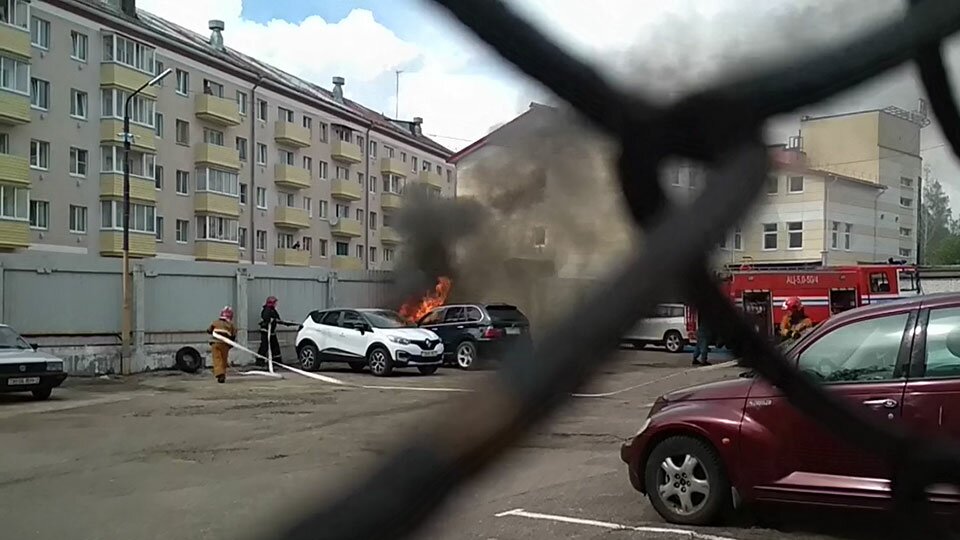Судя по видео, появившемуся в соцсетях, «BMW» загорелась на парковке. Поблизости находился «Renault Kaptur», но, благодаря оперативным действиям пожарных, второй автомобиль, похоже, не пострадал.