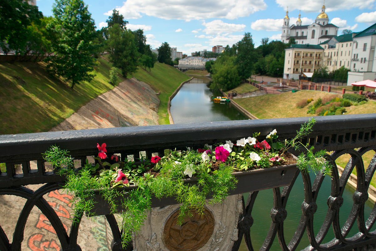 Мост в центре Витебска украсили живыми цветами — но их сразу начали ломать