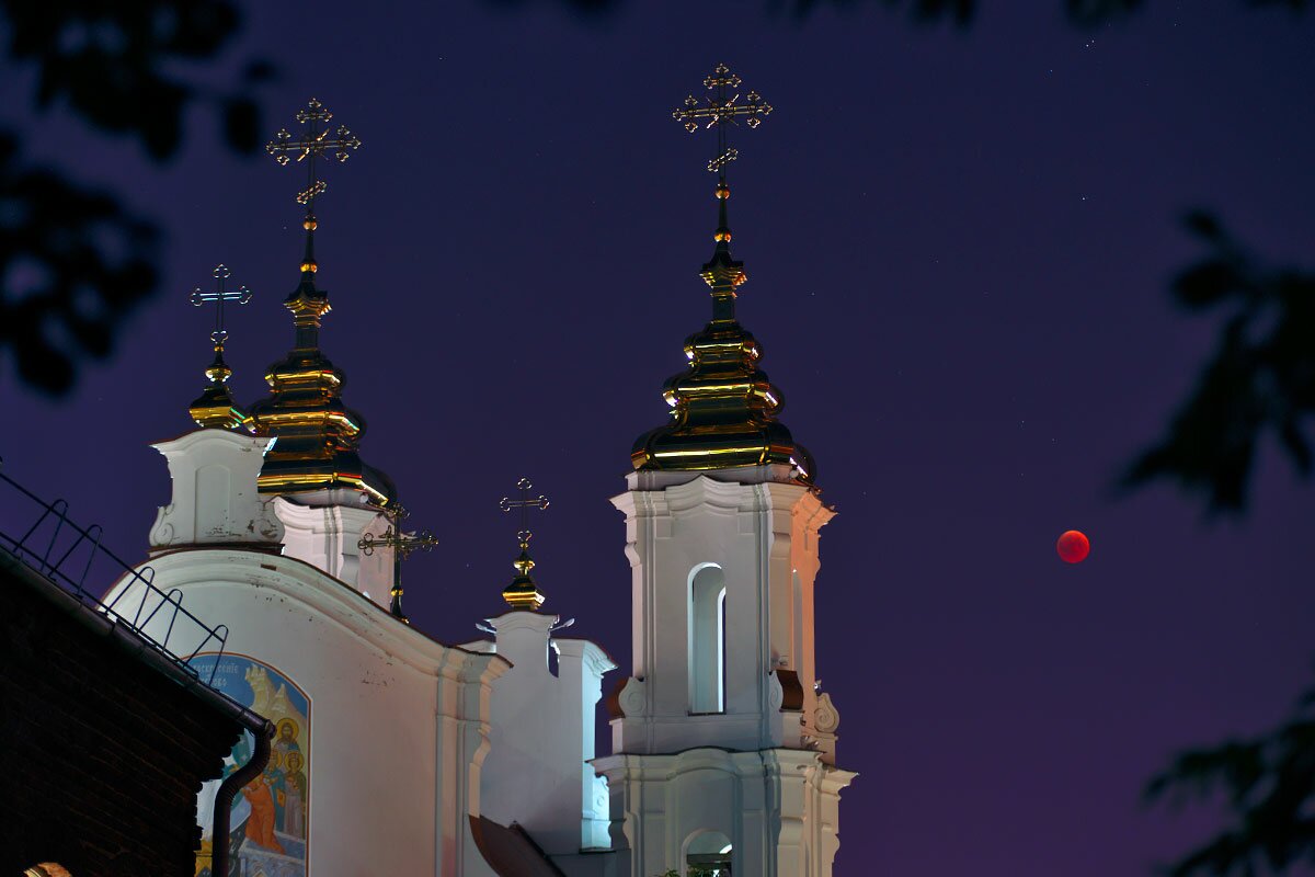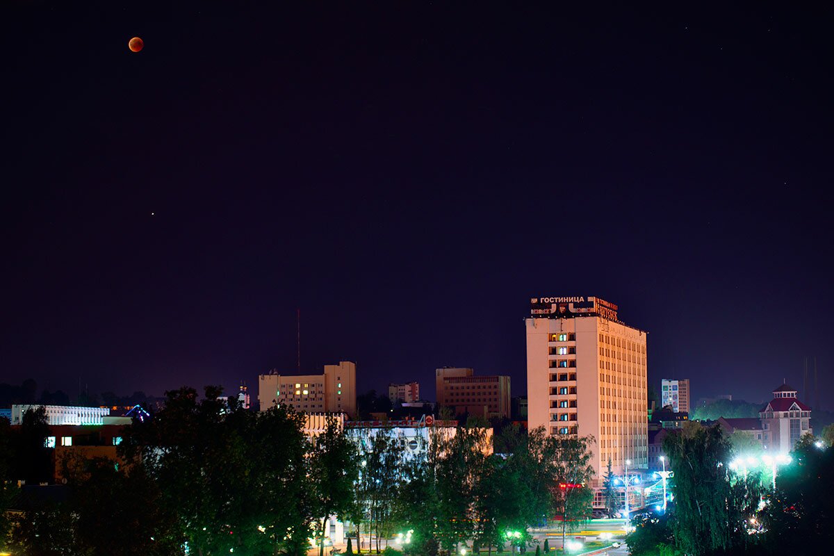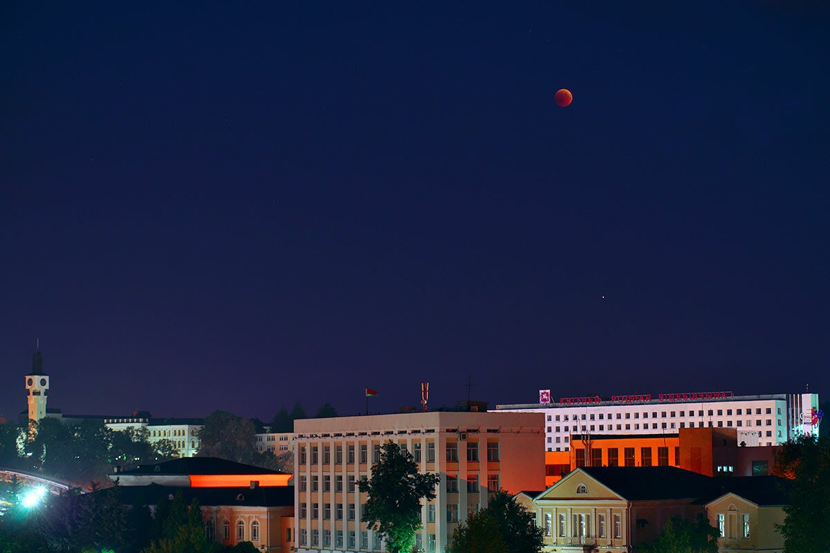 В ночь с 27 на 28 июля в Витебске можно было наблюдать лунное затмение, во время которого Луна окрасилась в кроваво-красный цвет.
