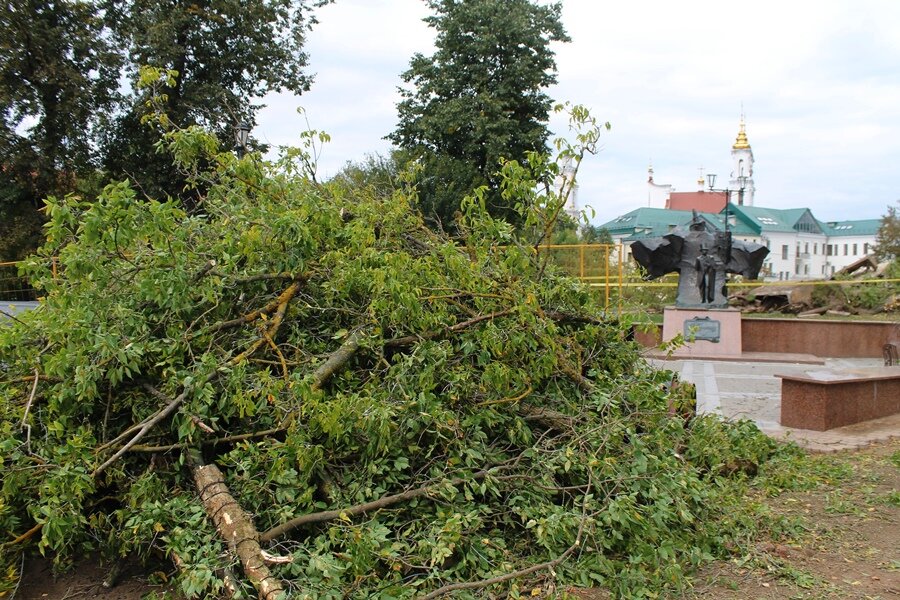 В Витебске упала раскидистая ива у памятника Пушкину, ее распилили