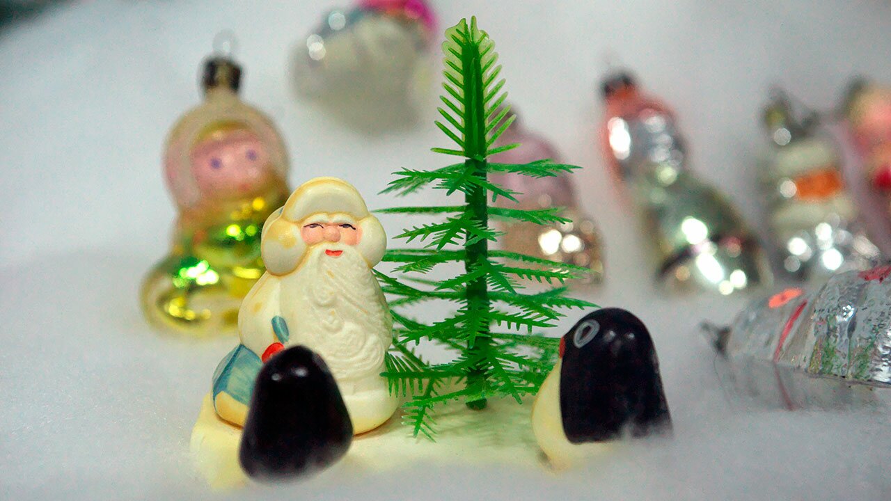 В экспозиции представлены 550 елочных украшений 1970-х — 1990-х годов. Большинство игрушек относится к советскому периоду, но выставлены также и игрушки, производившиеся уже после развала СССР.