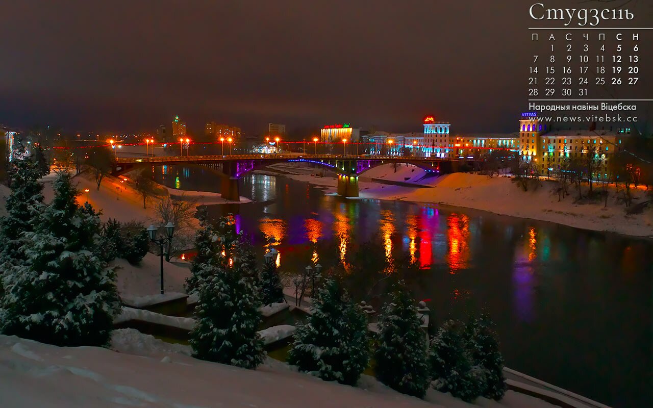 Компьютерные обои на рабочий стол с фото пейзажей Витебска и календарем на январь 2019 года для читателей «ННВ»: вид на Двину и Кировский мост с Успенской горки.