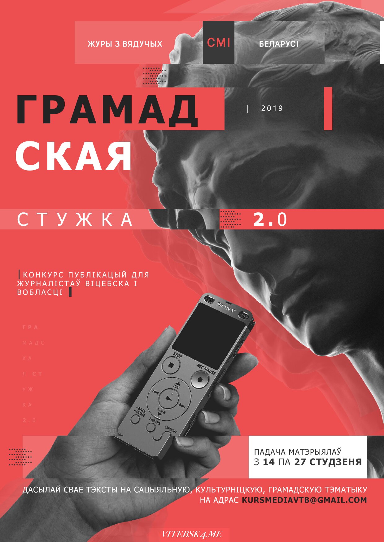 14 студзеня стартаваў прыём заявак на конкурс журналісцкіх публікацый “Грамадская стужка 2.0”. Удзельнічаць могуць журналісты, аўтары і блогеры, якія працуюць у Віцебску і Віцебскай вобласці.