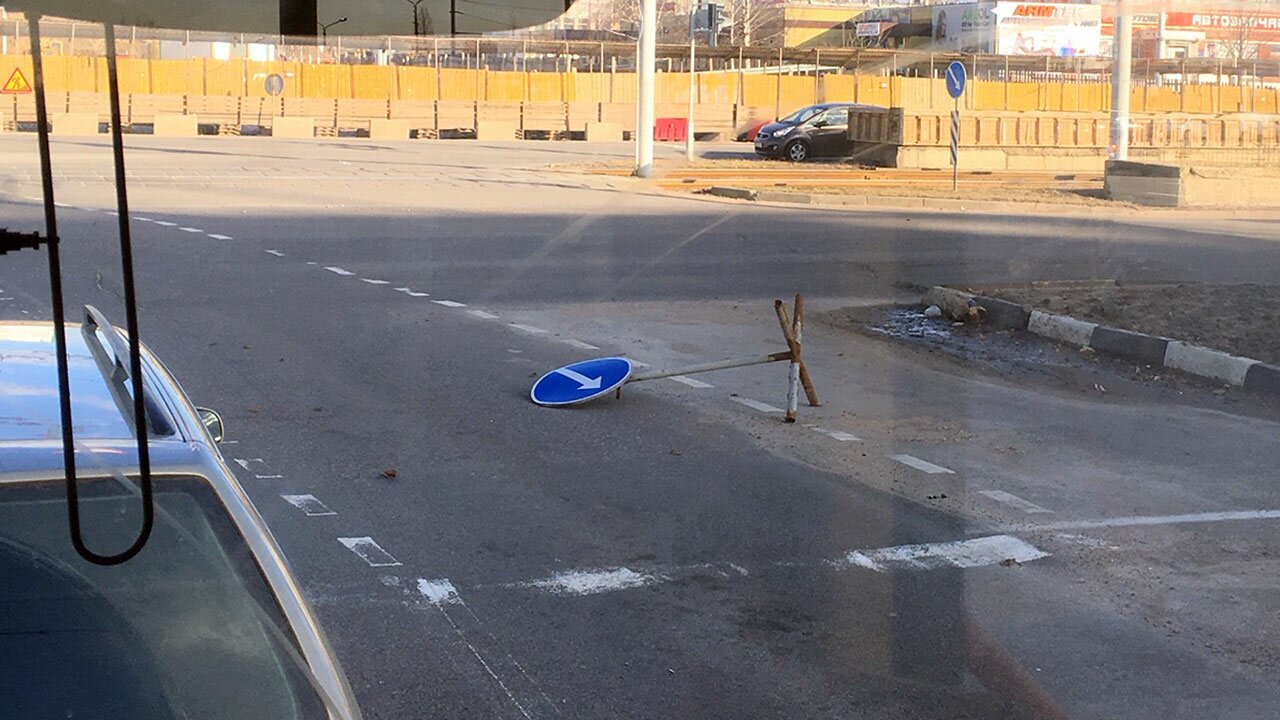 На перекресте проспекта Строителей и улицы Петруся Бровки ветром были опрокинуты несколько дорожных знаков, а с фасада здания торгового центра «Green» на улице Воинов-Интернационалистов сорвало часть обшивки.