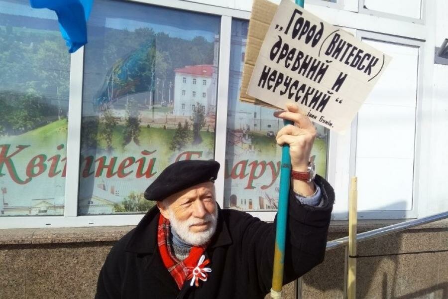 На плакате активиста было написано известное высказывание Бунина о Витебске — в автобиографическом романе «Жизнь Арсеньева», вышедшем в 1899 году, будущий нобелевский лауреат пишет, что Витебск показался ему древним и нерусским. Этим плакатом Борис Ханонович поздравлял жителей Витебска с Днём Воли и 101-й годовщиной провозглашения БНР.