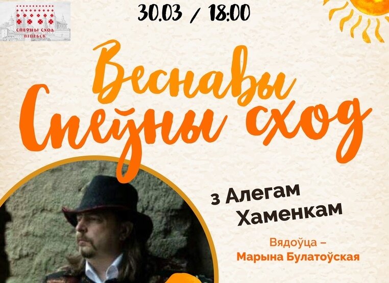 Надышоў час загукаці вясну і ў Віцебску! 30 сакавіка запрашаем на Веснавы Спеўны Сход разам з неверагодным госьцем – лідарам гурта “Палац”, музыкам, прадзюсарам, кампазіарам, радыёвядоўцам і інш. - Алегам Хаменкам!