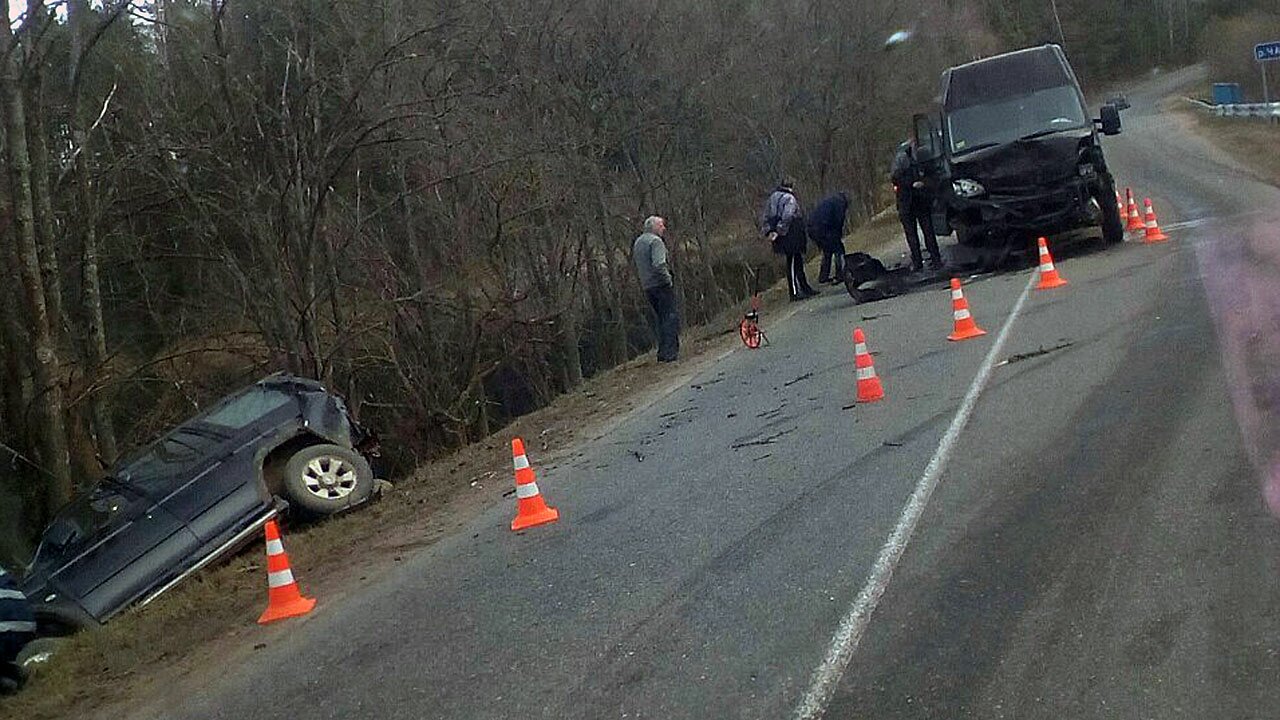 Недалеко от деревни Добромысли на трассе Р-109 18 апреля произошло столкновение микроавтобуса «Iveco» с джипом «Mitsubishi Pajero».