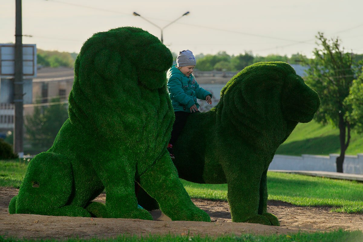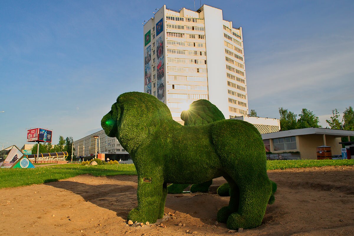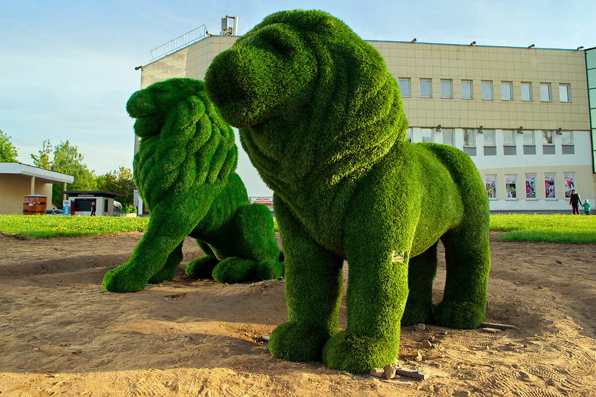 Две фигуры львов, имитирующие топиар, появились в Витебске у торгового центра «Беларусь».