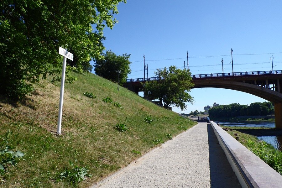 Табличка с упоминанием реки, давшей название Витебску, установлена на вкопанный столб возле драмтеатра недалеко от места впадения Витьбы в Двину.