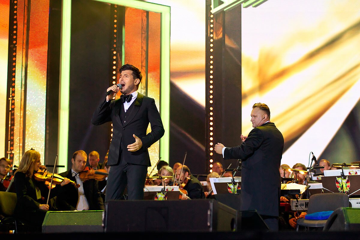 С президентским оркестром Республики Беларусь под управлением заслуженного артиста Беларуси Виктора Бабарикина на сцене летнего амфитеатра выступили итальянский тенор Алессандро Сафина, французский тенор Венсан Никло, солистка Большого театра России Ксения Дежнева, известная певица из Кореи Суми Чо. Беларусь представляли Иван Вабищевич, обладатель гран-при «Славянского базара» Пётр Елфимов и заслуженная артистка Беларуси Елена Шведова.